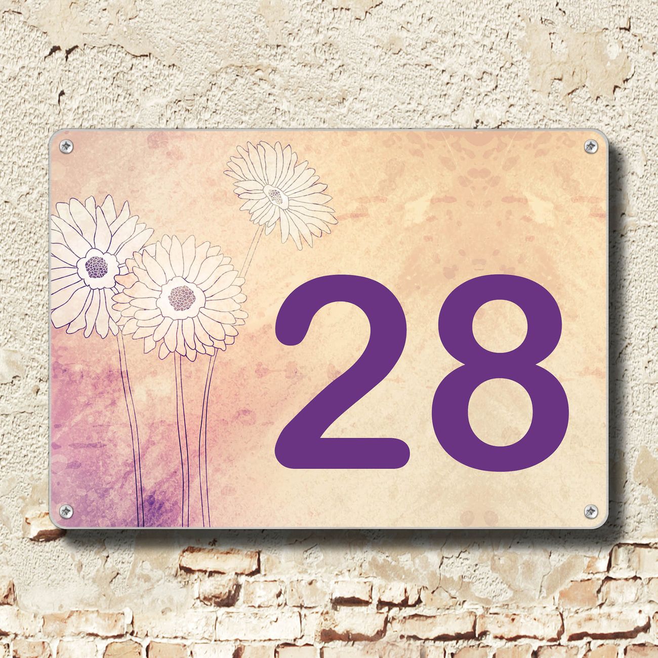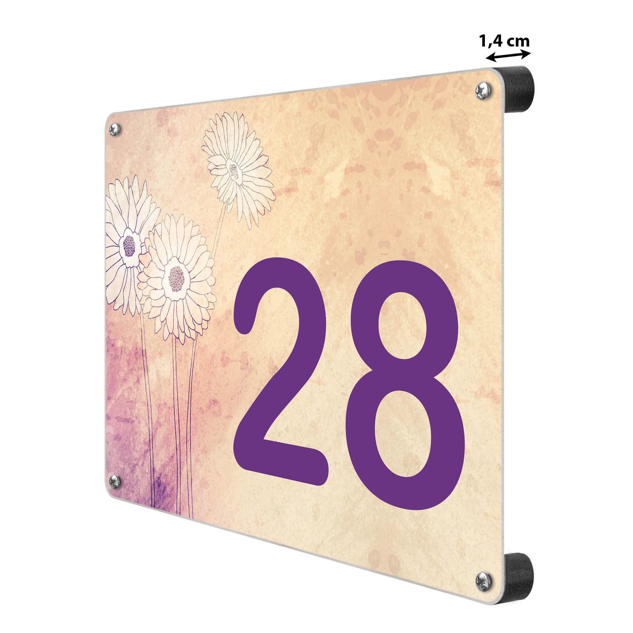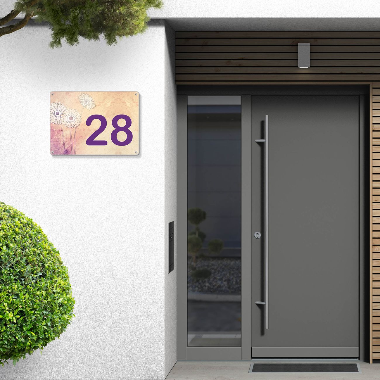 Hausnummernschild Edelstahl personalisierbar Gerbera