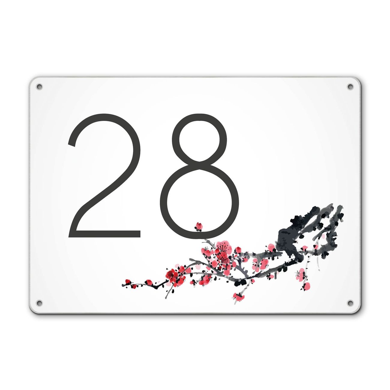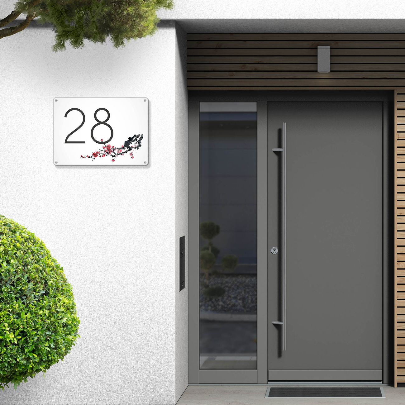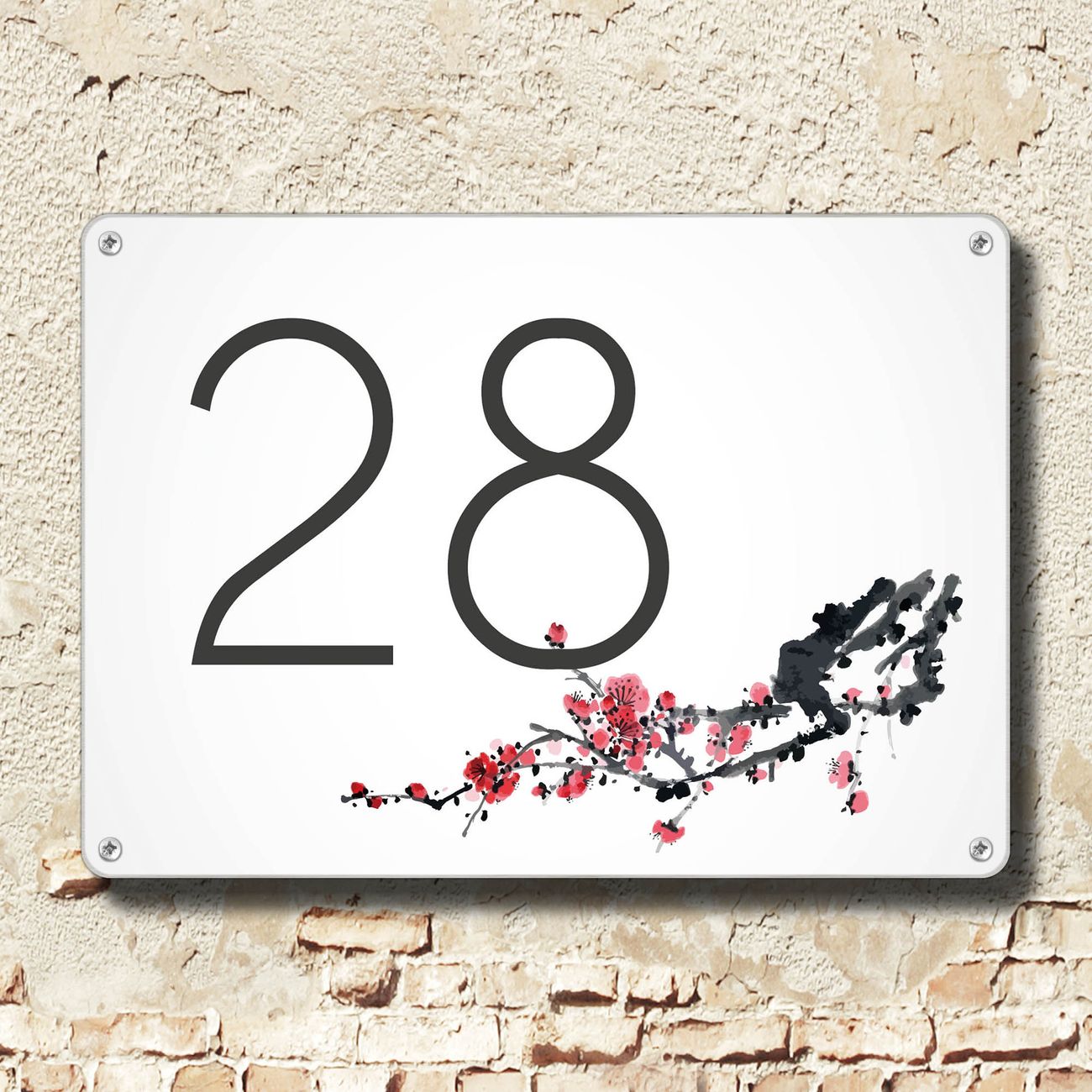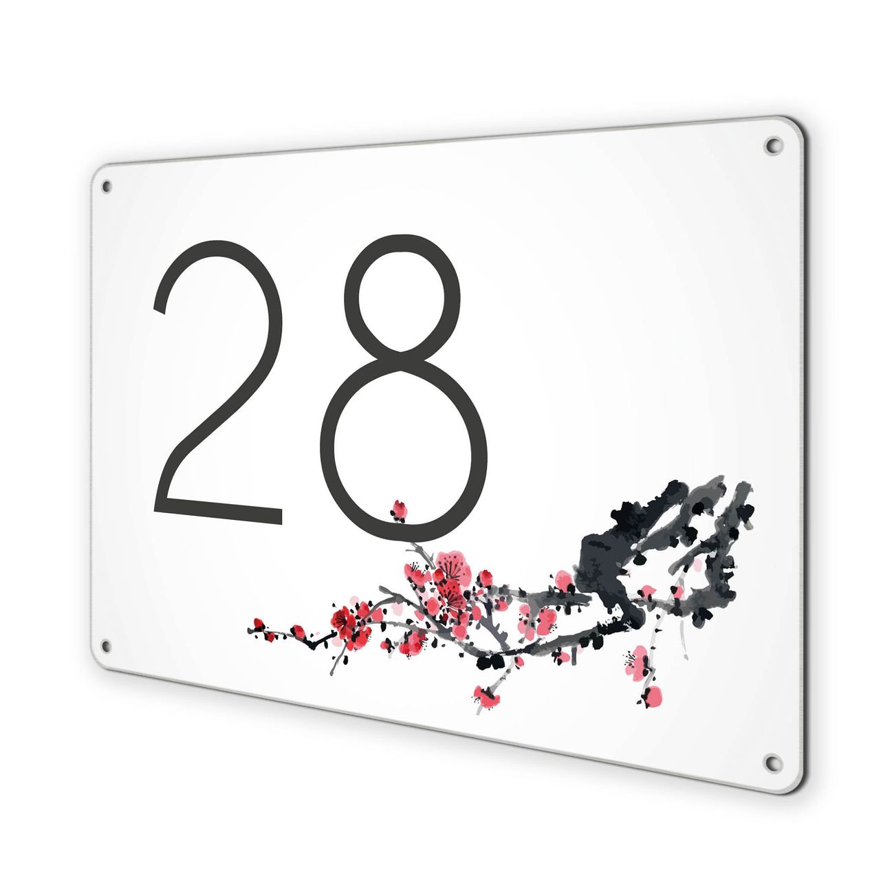 Hausnummernschild Edelstahl personalisierbar Japanische Blüten 2