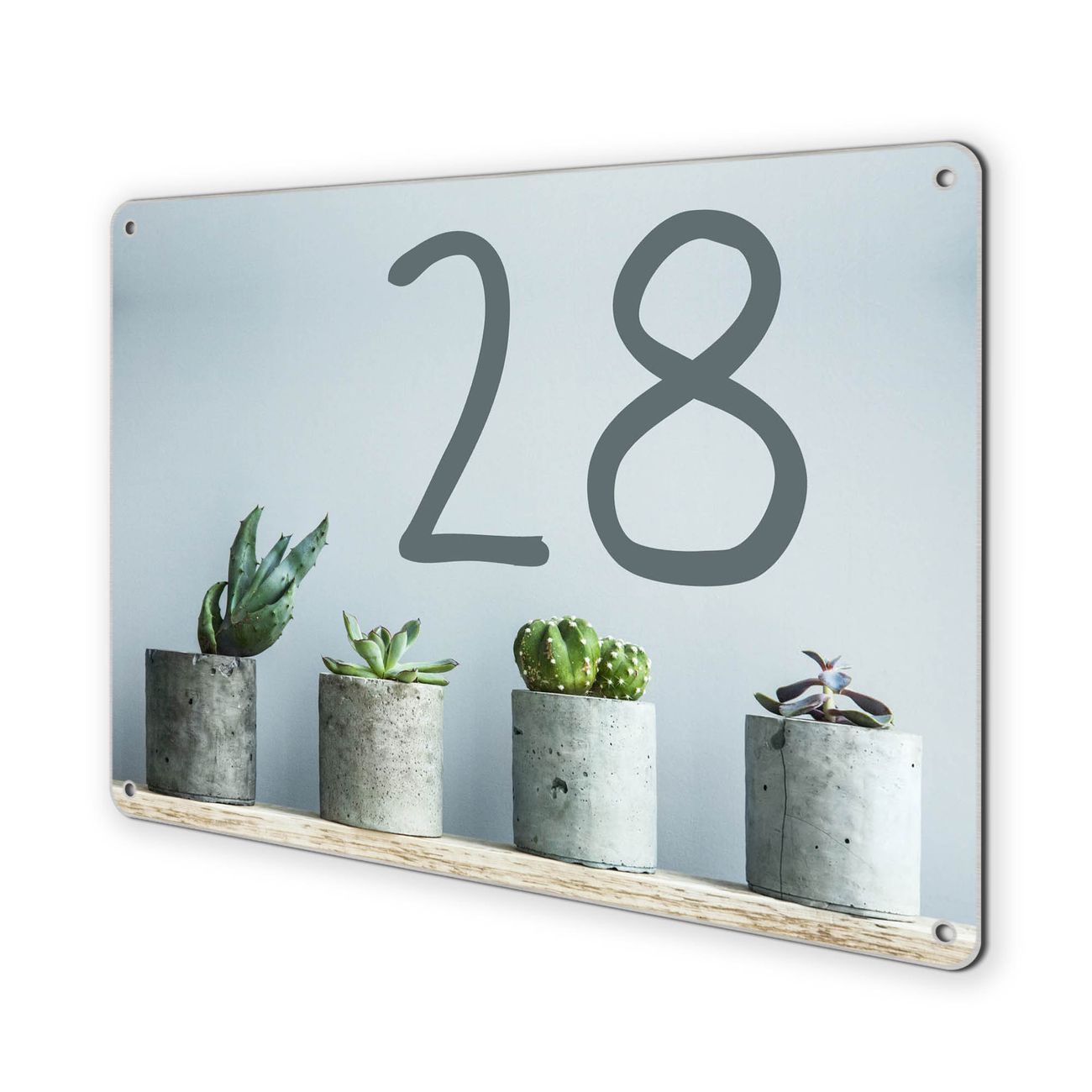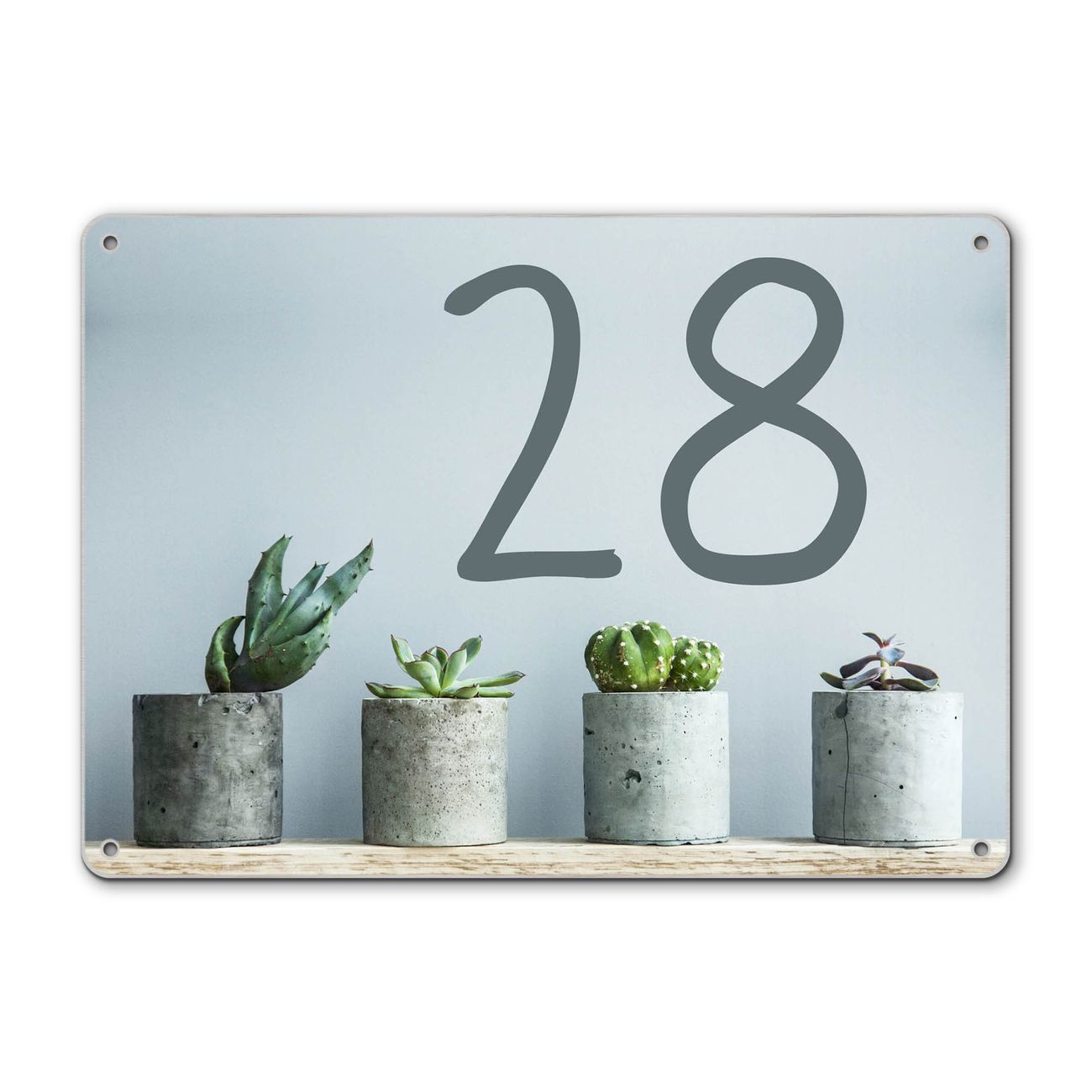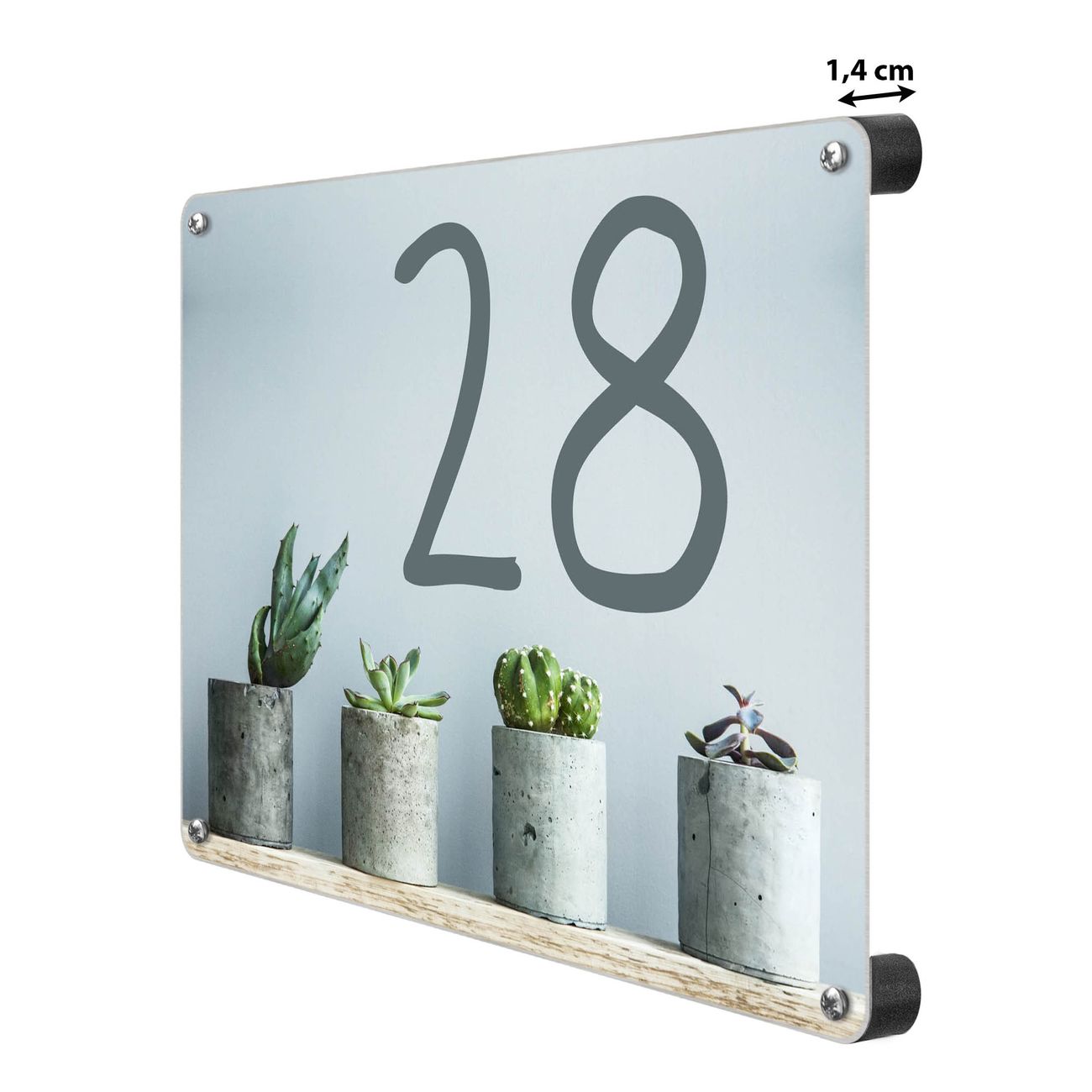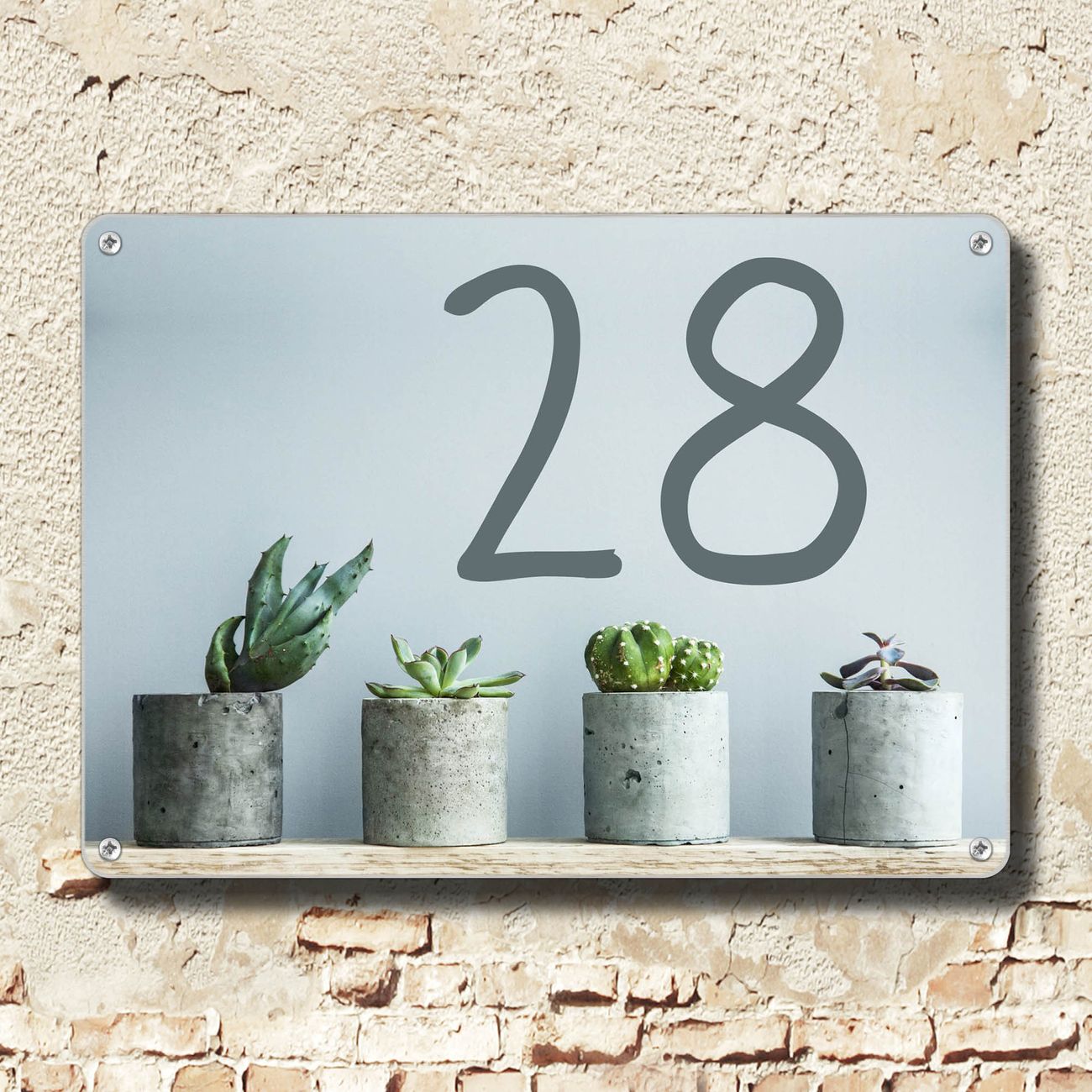 Hausnummernschild Edelstahl personalisierbar Kakteen in Beton
