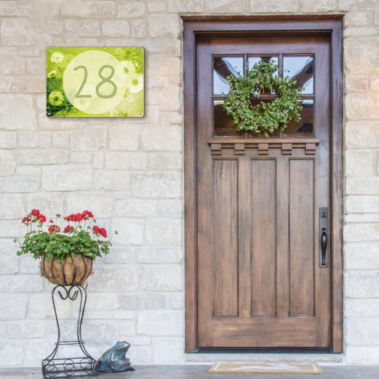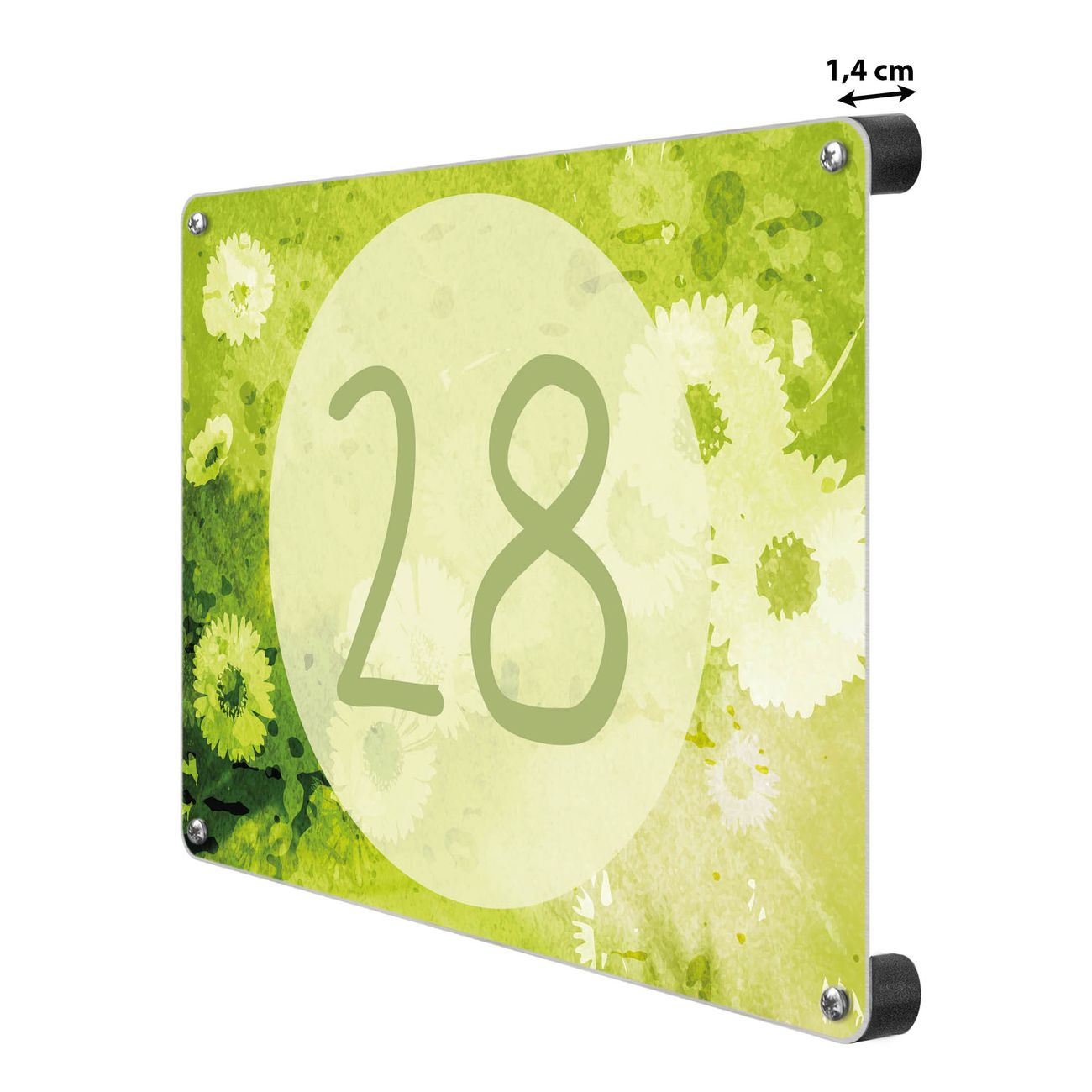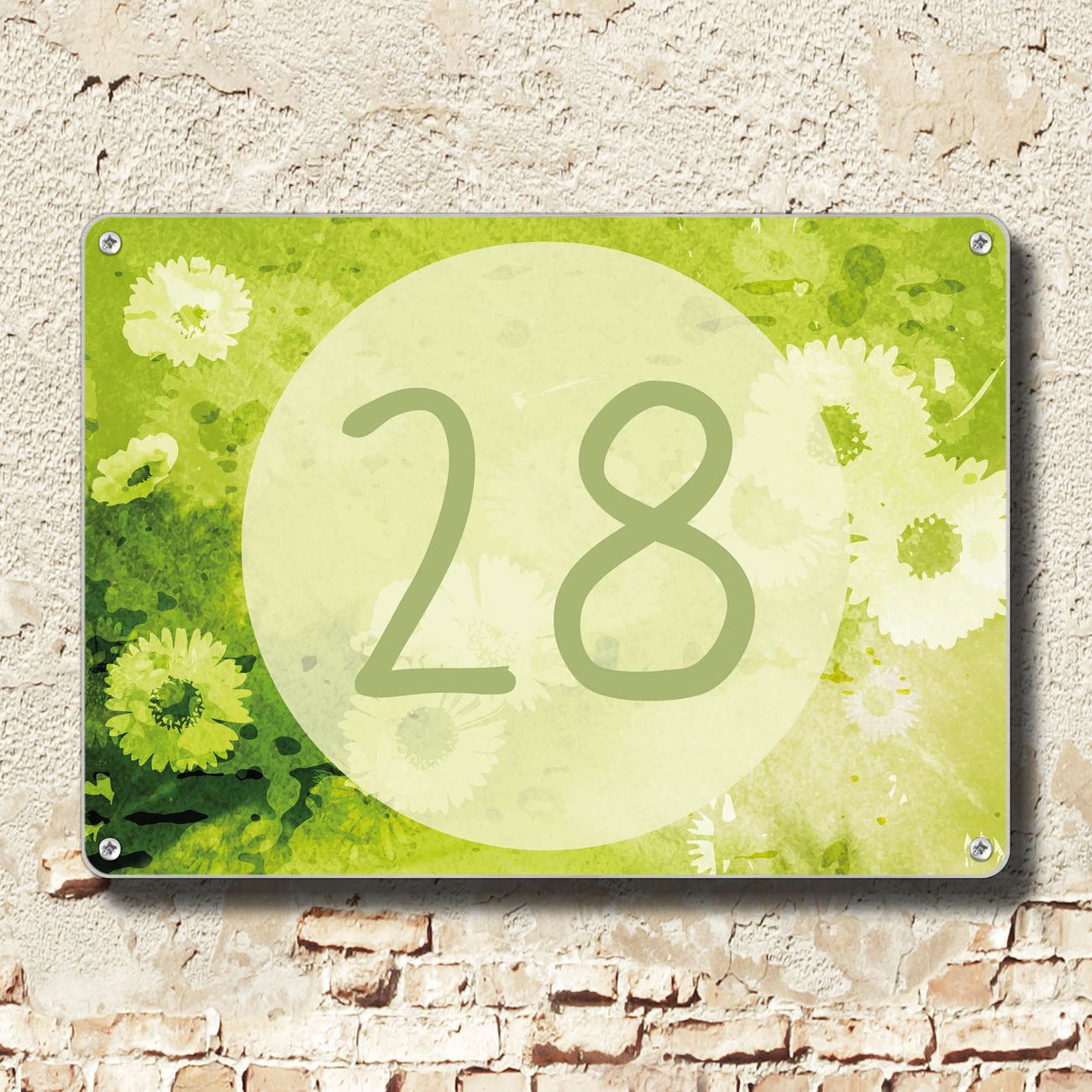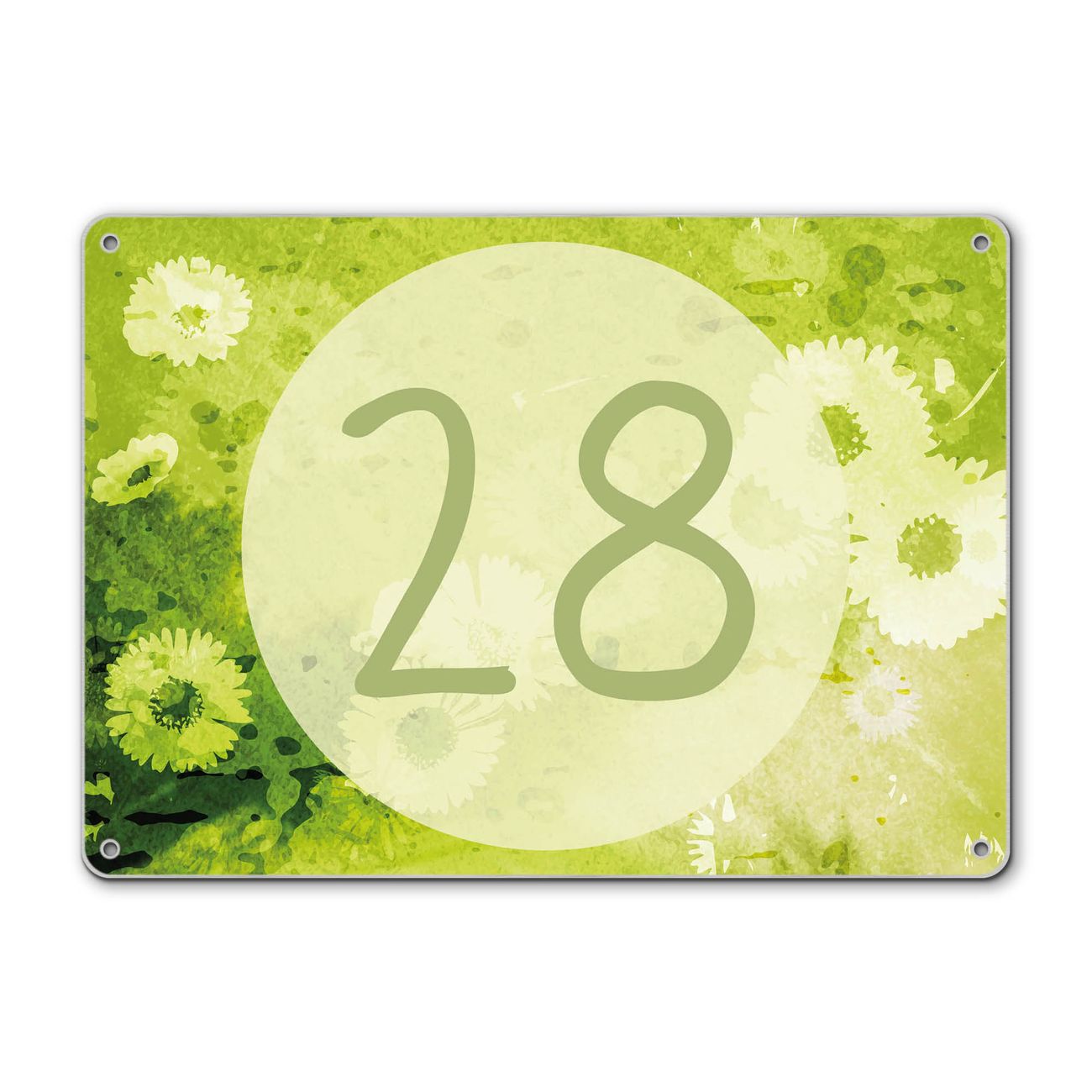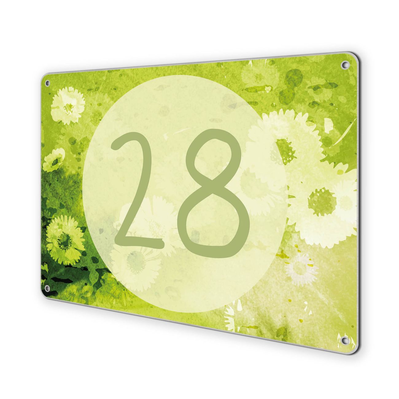 Hausnummernschild Edelstahl personalisierbar Kamille Grün