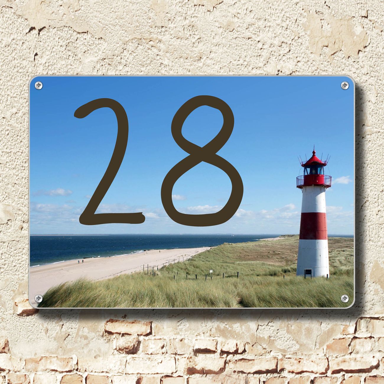 Hausnummernschild Edelstahl personalisierbar Leuchtturm