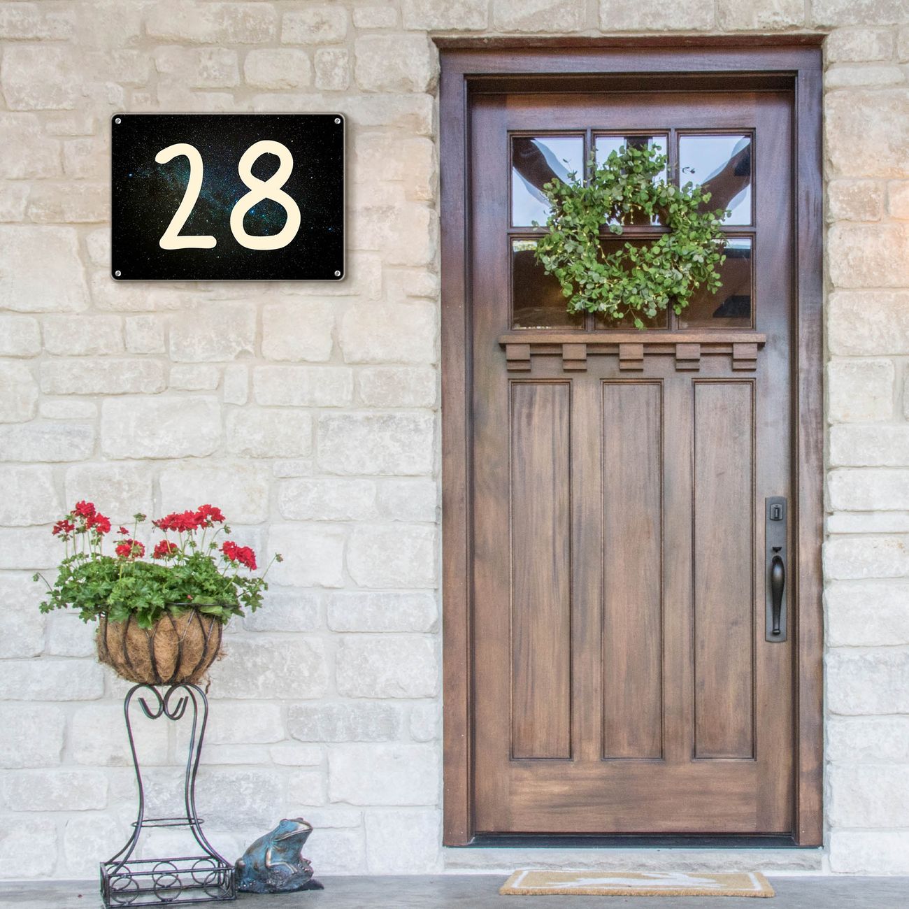 Das banjado Hausnummer Schild ist mit 4 Schrauben einfach am Haus anzubringen und zeigt dank der Größe stilsicher Ihre Hausnummer oder auch individuell Hausnummer mit Straßennamen. Das Hausschild personalisiert können Sie ganz auf Ihre Wünsche anpassen. Wir bieten verschiedenste Motive an. Dazu können Sie das Schild mit Ihrer Hausnummer anpassen.