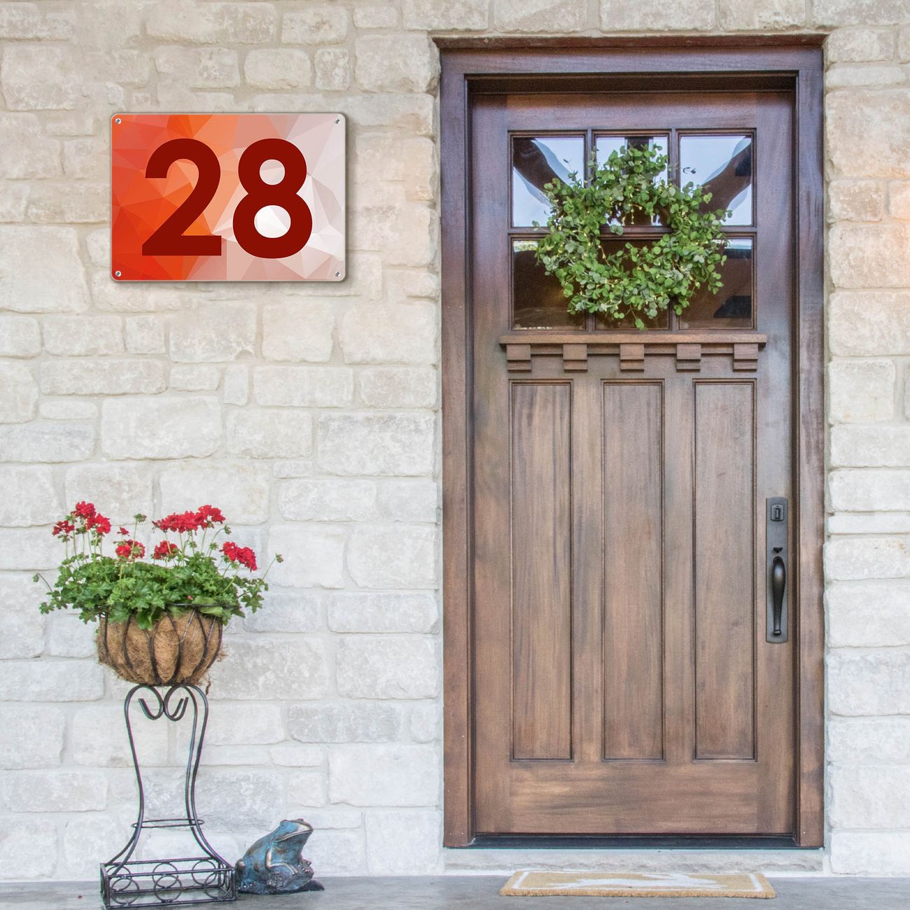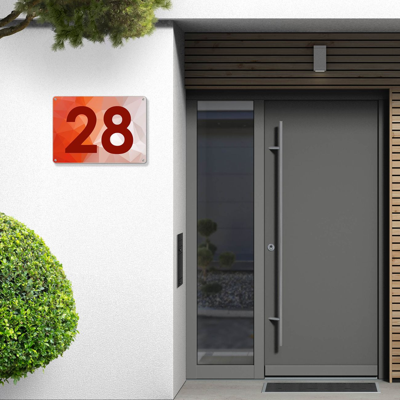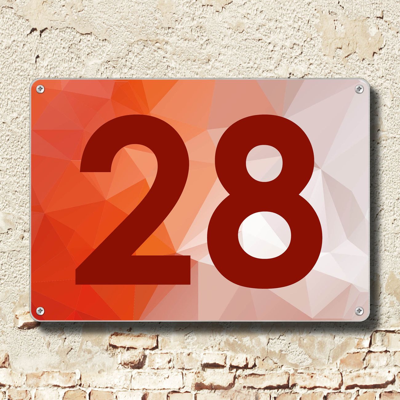 Hausnummernschild Edelstahl personalisierbar Orange Polygon