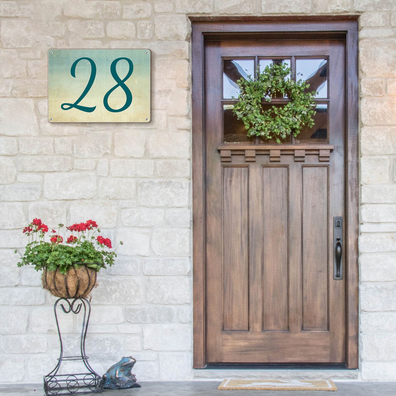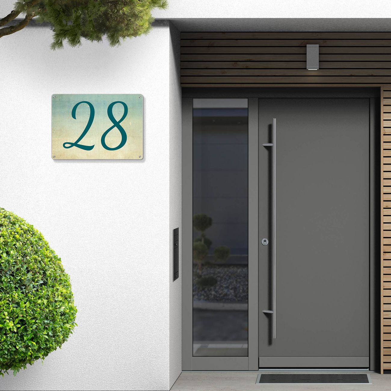 Das banjado Hausnummer Schild ist mit 4 Schrauben einfach am Haus anzubringen und zeigt dank der Größe stilsicher Ihre Hausnummer oder auch individuell Hausnummer mit Straßennamen. Das Hausschild personalisiert können Sie ganz auf Ihre Wünsche anpassen. Wir bieten verschiedenste Motive an. Dazu können Sie das Schild mit Ihrer Hausnummer anpassen.
