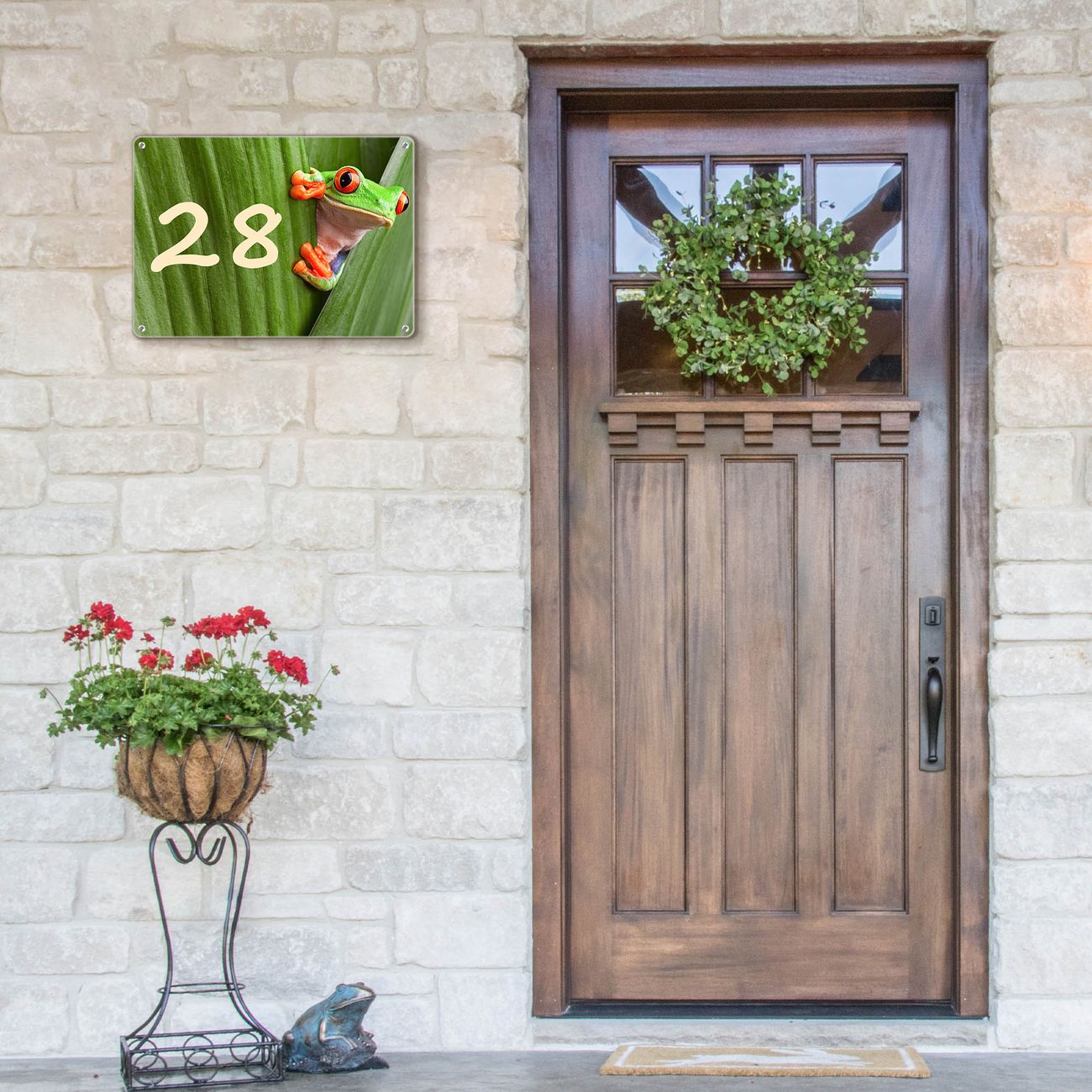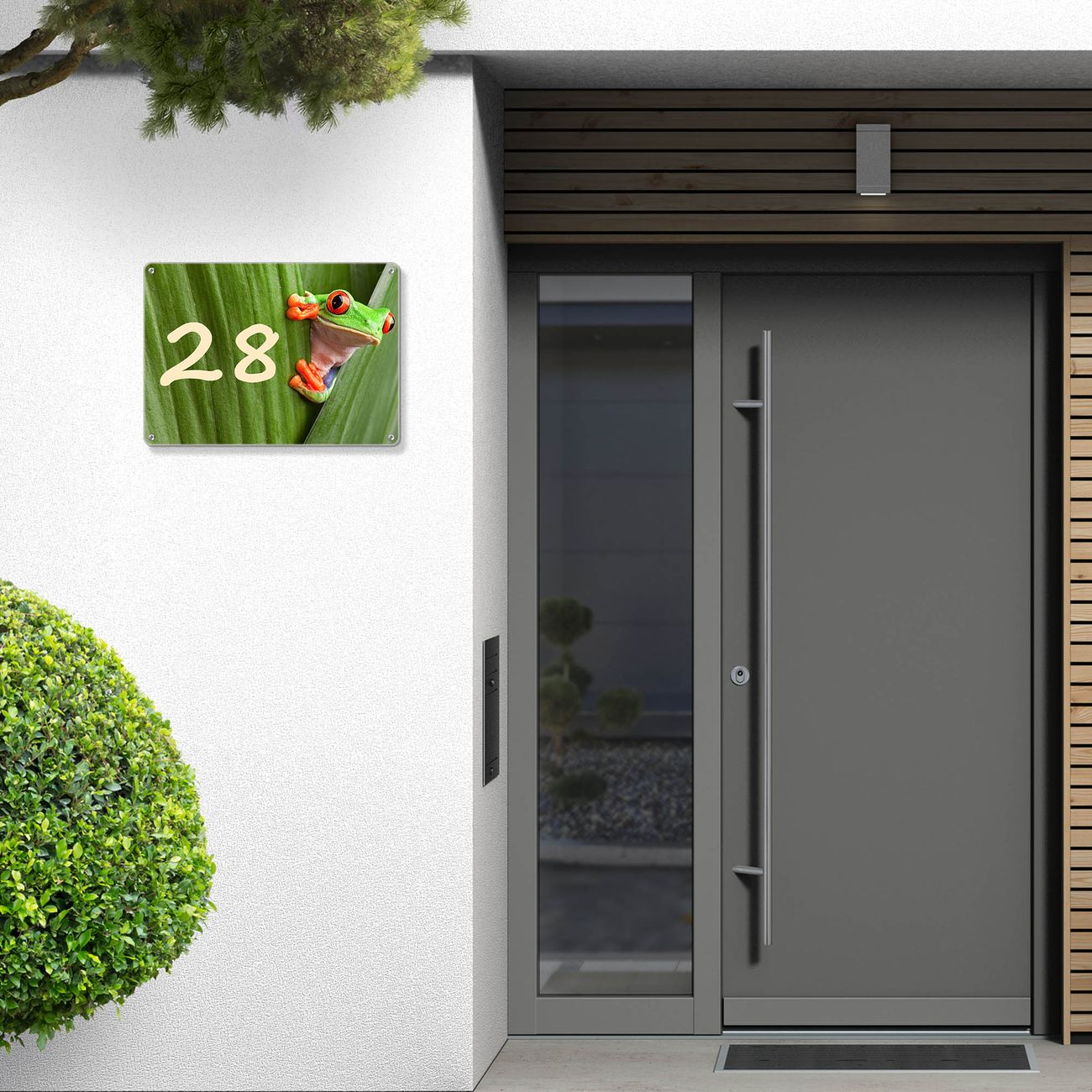 Das banjado Hausnummer Schild ist mit 4 Schrauben einfach am Haus anzubringen und zeigt dank der Größe stilsicher Ihre Hausnummer oder auch individuell Hausnummer mit Straßennamen. Das Hausschild personalisiert können Sie ganz auf Ihre Wünsche anpassen. Wir bieten verschiedenste Motive an. Dazu können Sie das Schild mit Ihrer Hausnummer anpassen.