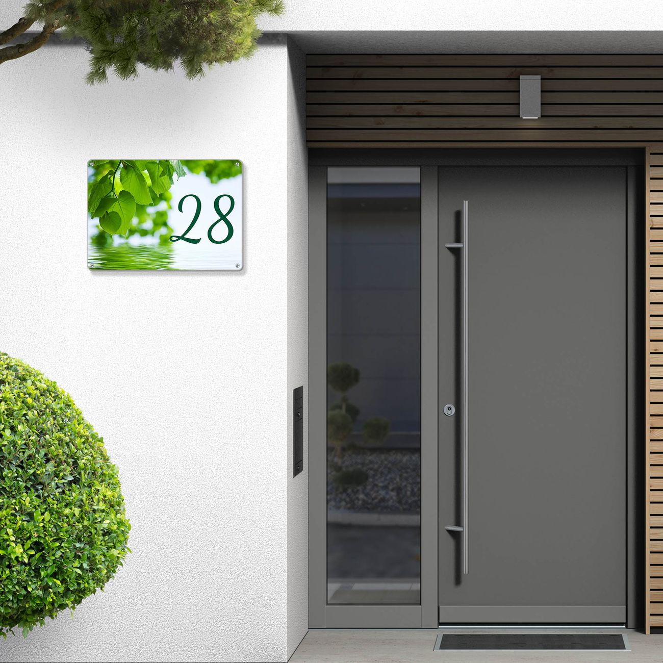 Das banjado Hausnummer Schild ist mit 4 Schrauben einfach am Haus anzubringen und zeigt dank der Größe stilsicher Ihre Hausnummer oder auch individuell Hausnummer mit Straßennamen. Das Hausschild personalisiert können Sie ganz auf Ihre Wünsche anpassen. Wir bieten verschiedenste Motive an. Dazu können Sie das Schild mit Ihrer Hausnummer anpassen.