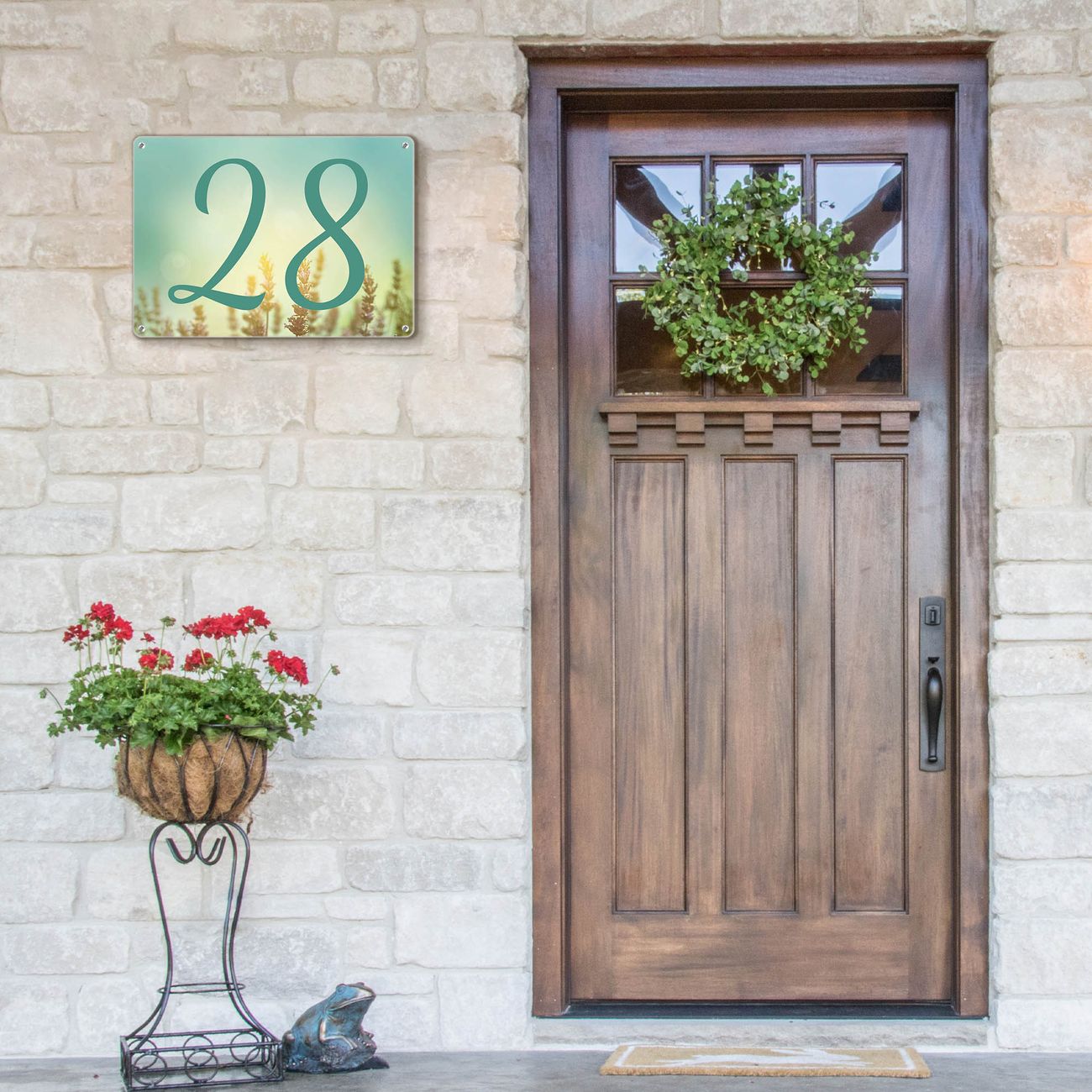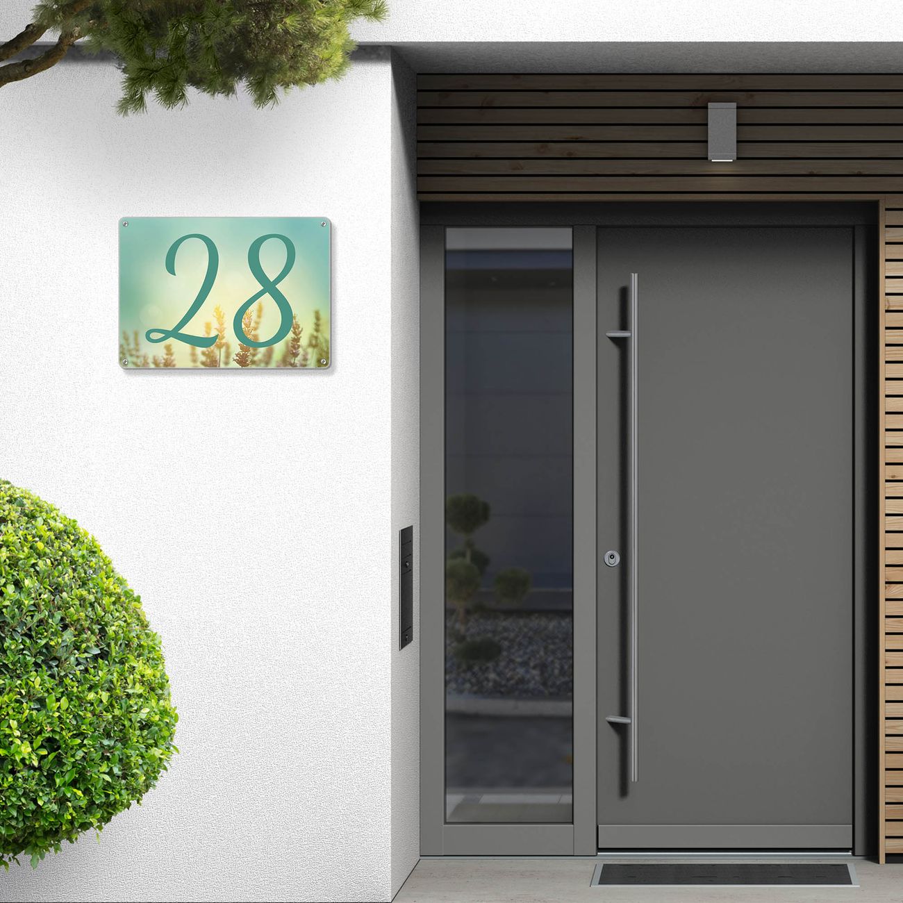 Das banjado Hausnummer Schild ist mit 4 Schrauben einfach am Haus anzubringen und zeigt dank der Größe stilsicher Ihre Hausnummer oder auch individuell Hausnummer mit Straßennamen. Das Hausschild personalisiert können Sie ganz auf Ihre Wünsche anpassen. Wir bieten verschiedenste Motive an. Dazu können Sie das Schild mit Ihrer Hausnummer anpassen.