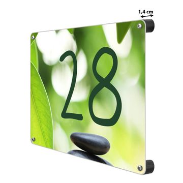 Das banjado Hausnummer Schild ist mit 4 Schrauben einfach am Haus anzubringen und zeigt dank der Größe stilsicher Ihre Hausnummer oder auch individuell Hausnummer mit Straßennamen. Das Hausschild personalisiert können Sie ganz auf Ihre Wünsche anpassen. Wir bieten verschiedenste Motive an. Dazu können Sie das Schild mit Ihrer Hausnummer anpassen.
