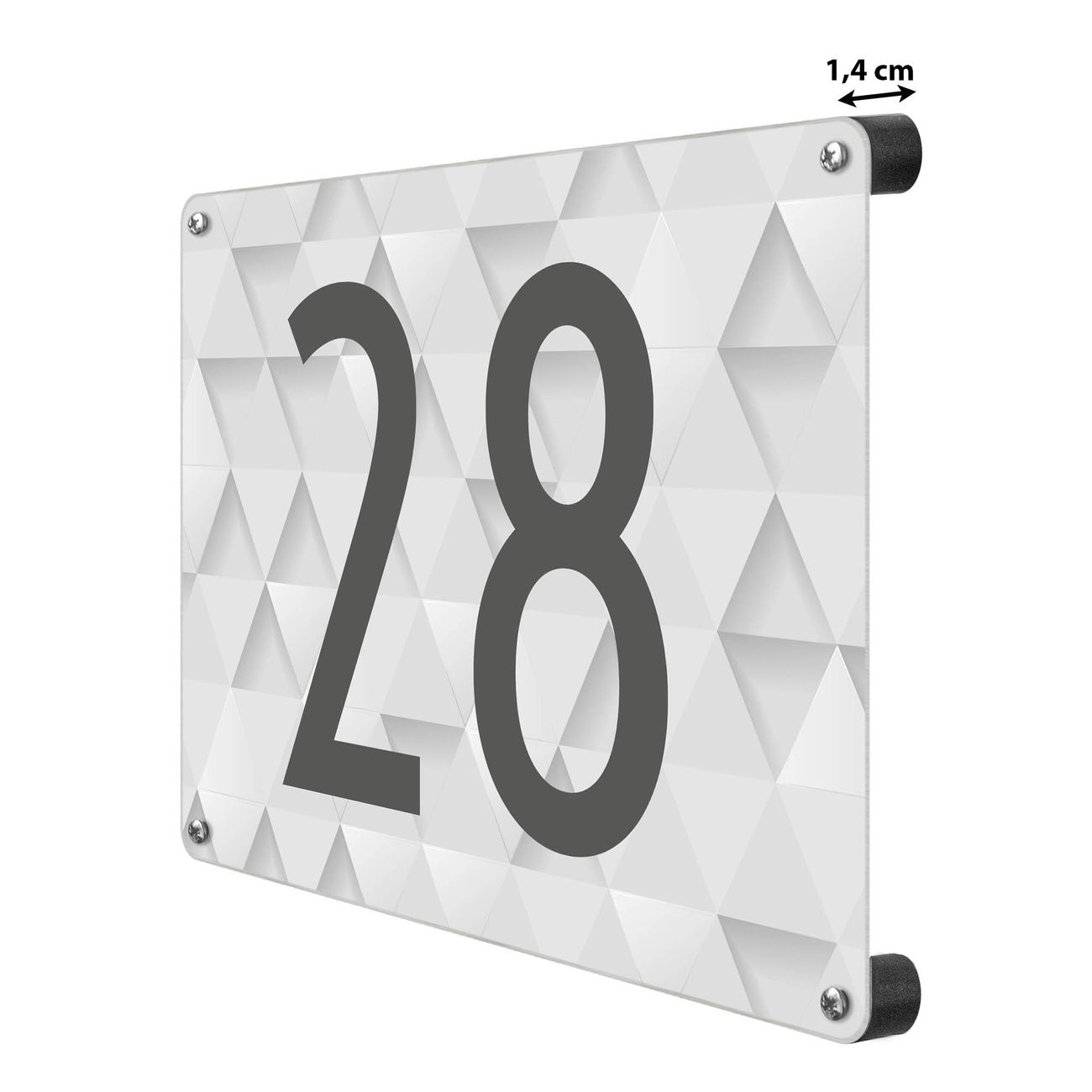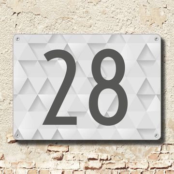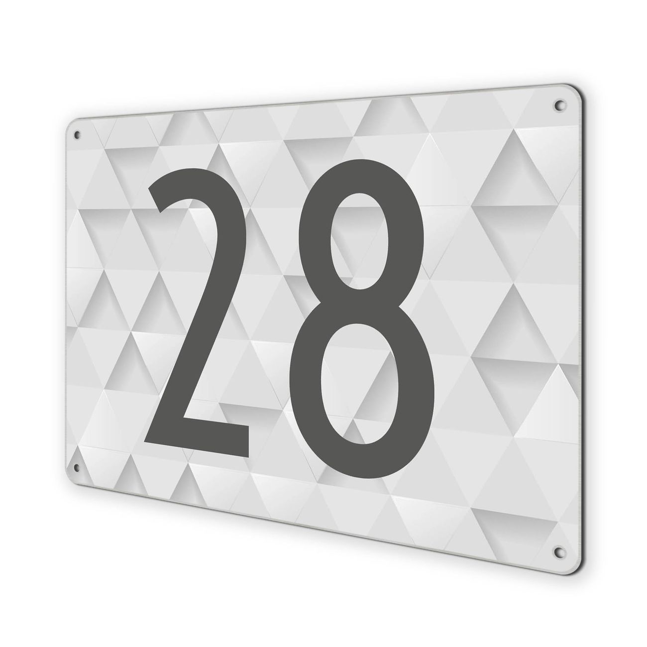 Hausnummernschild Edelstahl personalisierbar Weisse Dreiecke