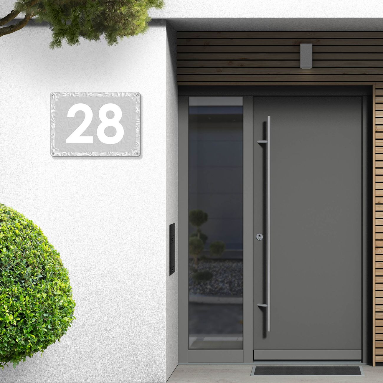 Hausnummernschild Edelstahl personalisierbar White Swirl