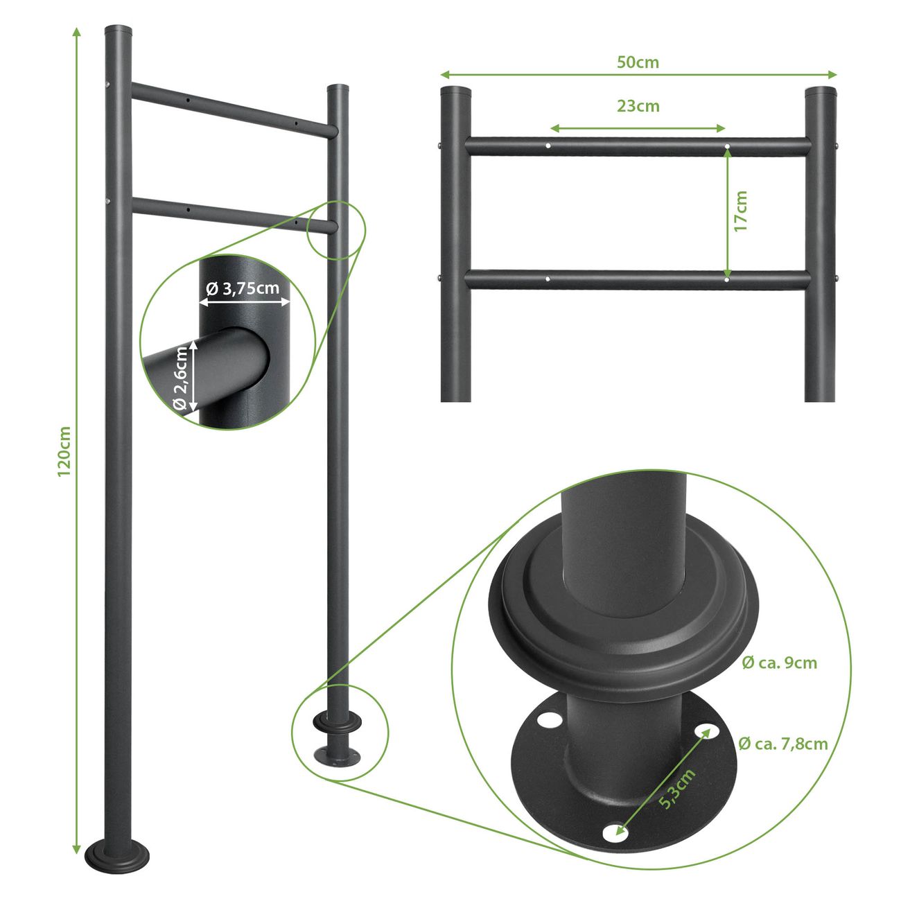 Das Vierkantrohr präsentieren sich in einem edlen anthrazit Design. Sie erhalten mit Standfuß das passende Montagematerial um diesen zu montieren.
