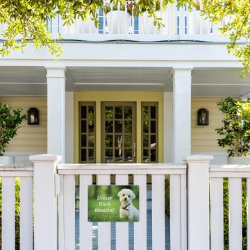 FUNKTION: Das banjado Vorsicht Hund Schild ist mit 4 Schrauben einfach am Zaun anzubringen oder der Mauer. Durch die Größe ist das Schild schnell und leicht zu erkennen. DESIGN: Das Vorsicht Hund Schild können Sie ganz auf Ihre Wünsche anpassen. Wir bieten verschiedenste Motive an und gern auch mit eigenem Foto und Text gestalten. DETAILS: Die Schilder sind 32,2 x 23 cm groß und aus robustem Edelstahl gefertigt. Das Schild kommt ohne Montagematerial was Ihnen die Wahl des Einsatzorter noch individueller macht. WETTERFEST: Die in Deutschland veredelten banjado Vorsicht Hund Schilder sind UV- und Wetterbeständig. BANJADO: Ihr individuelles Schild wird in Sachsen in einer kleinen Manufaktur personalisiert & liebevoll verpackt. Viel Freude mit Ihrem Vorsicht Hund Schild wünscht das banjado-Team.