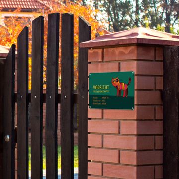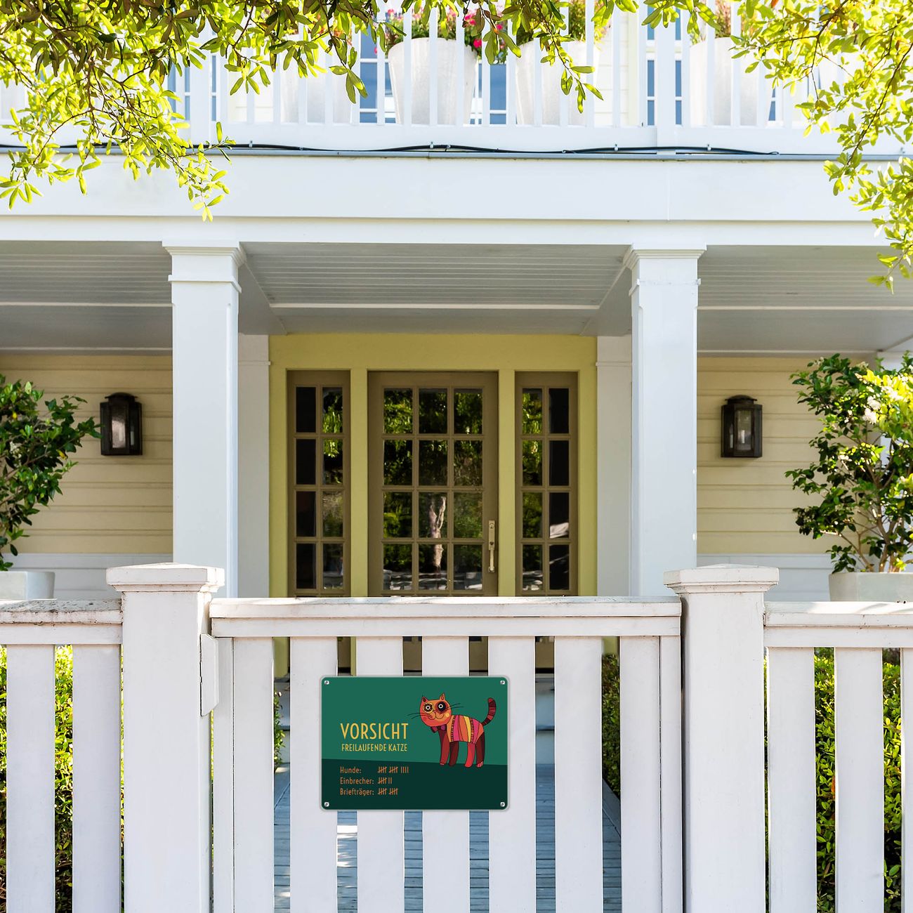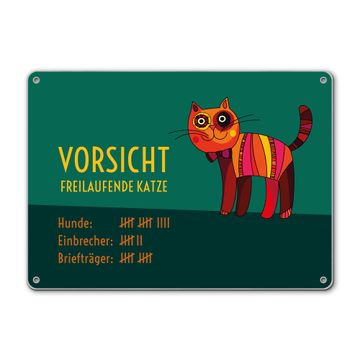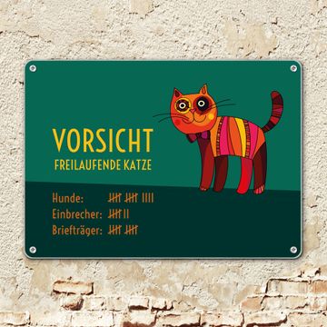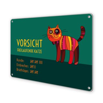Vorsicht Hund Schild Warnschild Hund mit Motiv Orange Katze