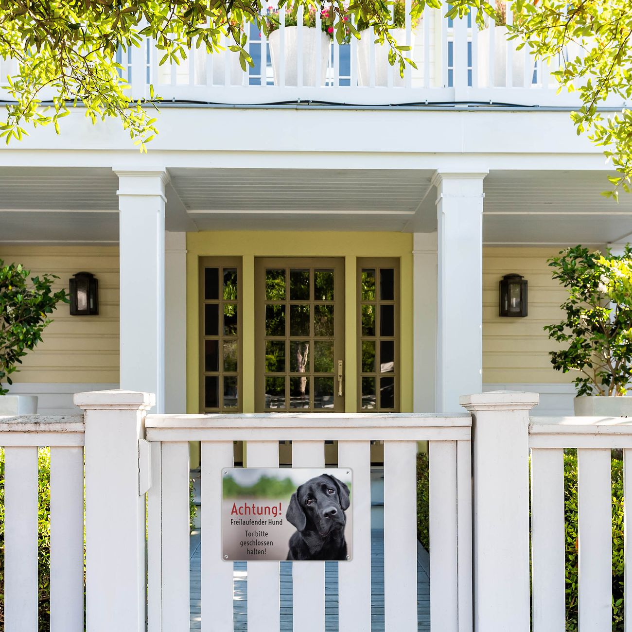 FUNKTION: Das banjado Vorsicht Hund Schild ist mit 4 Schrauben einfach am Zaun anzubringen oder der Mauer. Durch die Größe ist das Schild schnell und leicht zu erkennen. DESIGN: Das Vorsicht Hund Schild können Sie ganz auf Ihre Wünsche anpassen. Wir bieten verschiedenste Motive an und gern auch mit eigenem Foto und Text gestalten. DETAILS: Die Schilder sind 32,2 x 23 cm groß und aus robustem Edelstahl gefertigt. Das Schild kommt ohne Montagematerial was Ihnen die Wahl des Einsatzorter noch individueller macht. WETTERFEST: Die in Deutschland veredelten banjado Vorsicht Hund Schilder sind UV- und Wetterbeständig. BANJADO: Ihr individuelles Schild wird in Sachsen in einer kleinen Manufaktur personalisiert & liebevoll verpackt. Viel Freude mit Ihrem Vorsicht Hund Schild wünscht das banjado-Team.