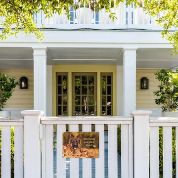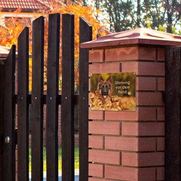 FUNKTION: Das banjado Vorsicht Hund Schild ist mit 4 Schrauben einfach am Zaun anzubringen oder der Mauer. Durch die Größe ist das Schild schnell und leicht zu erkennen. DESIGN: Das Vorsicht Hund Schild können Sie ganz auf Ihre Wünsche anpassen. Wir bieten verschiedenste Motive an und gern auch mit eigenem Foto und Text gestalten. DETAILS: Die Schilder sind 32,2 x 23 cm groß und aus robustem Edelstahl gefertigt. Das Schild kommt ohne Montagematerial was Ihnen die Wahl des Einsatzorter noch individueller macht. WETTERFEST: Die in Deutschland veredelten banjado Vorsicht Hund Schilder sind UV- und Wetterbeständig. BANJADO: Ihr individuelles Schild wird in Sachsen in einer kleinen Manufaktur personalisiert & liebevoll verpackt. Viel Freude mit Ihrem Vorsicht Hund Schild wünscht das banjado-Team.